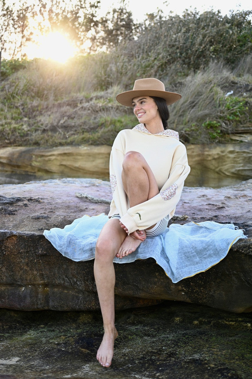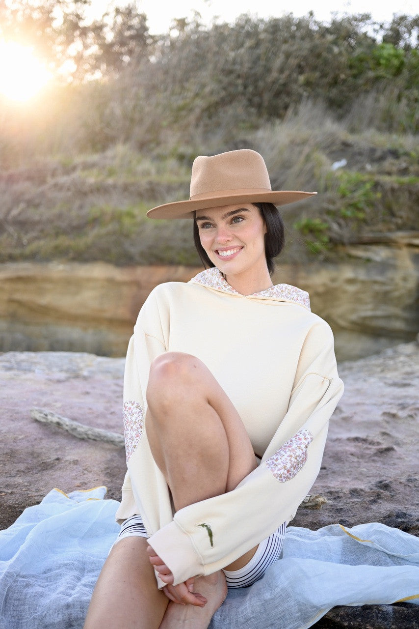 Available in two dreamy shades – Cream and Baby Pink – this hoodie brings a feminine touch to your outdoor wardrobe. Plus, with practical features like a spacious hood, drop shoulders and voluminous sleeves with sweetly printed elbow patches, it’s just as functional as it is fashionable.